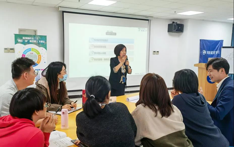 為更好地理解情商的具體內涵和本質,提高個人在情緒、情感、意志、耐受挫折等方面的管理能力,2021年10月22日,同陽賦能學院在濱海新區總工會“四送一補”政策的大力支持下,結合公司人才發展規劃,特邀企業管理與團隊建設領域專家衛蘭老師為公司全體員工帶來了《情商助力職業規劃》主題培訓。