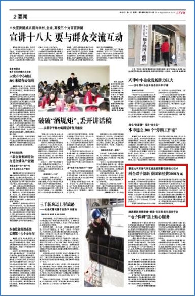 天津日報:科企聯手創新 獲國家經費2000萬元