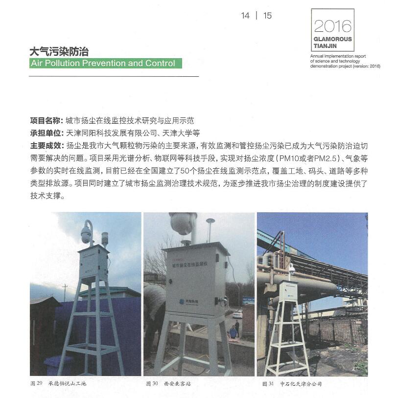 天津同陽科技揚塵在線監測系統入選《科技支撐美麗天津建設年度執行報告(2016年度)》