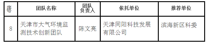 天津同陽科技發展有限公司“天津市大氣環境監測技術創新團隊”成功入選。