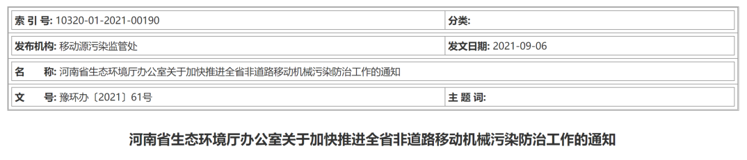 河南省生態(tài)環(huán)境廳于近日發(fā)布的《河南省生態(tài)環(huán)境廳辦公室關(guān)于加快推進(jìn)全省非道路移動機(jī)械污染防治工作的通知》中提出力爭在2021年底前完成20萬臺非道路移動機(jī)械的信息采集、環(huán)保標(biāo)識下發(fā)和現(xiàn)在監(jiān)控設(shè)備安裝等工作。經(jīng)過深度治理,非道路移動機(jī)械顆粒物在線數(shù)據(jù)可達(dá)到《非道路柴油移動機(jī)械排氣煙度限值及測量方法》(GB36886-2018)規(guī)定的Ⅲ類限值,并對顆粒物排放數(shù)據(jù)實(shí)現(xiàn)在線監(jiān)測數(shù)據(jù)與省、市管理平臺聯(lián)網(wǎng)。還同時(shí)要求了嚴(yán)格執(zhí)行非道路移動機(jī)械的監(jiān)督抽查工作等內(nèi)容。