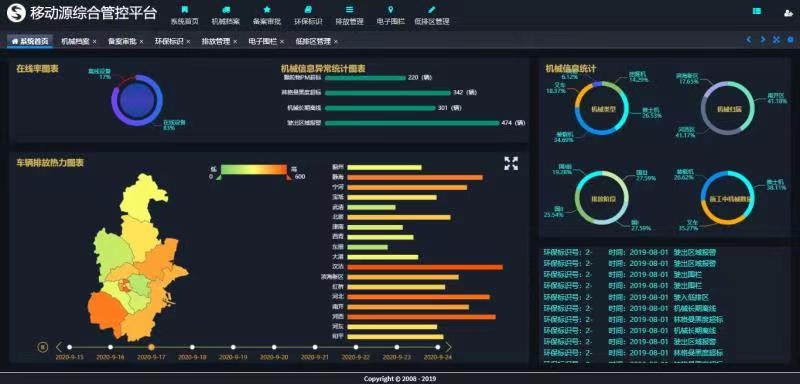 非道路移動機(jī)械平臺可以查看全省/市的機(jī)械臺帳,以及對機(jī)械的遠(yuǎn)程監(jiān)管。掌握全部非道路移動機(jī)械的排放階段、工況狀態(tài)、地理定位以及尾氣污染物排放情況并進(jìn)行數(shù)據(jù)分析與統(tǒng)計(jì)。還可以在線對工地電子圍欄、低排區(qū)等進(jìn)行規(guī)劃,降低非道路移動機(jī)械在特定時(shí)間特定地點(diǎn)的污染物排放。