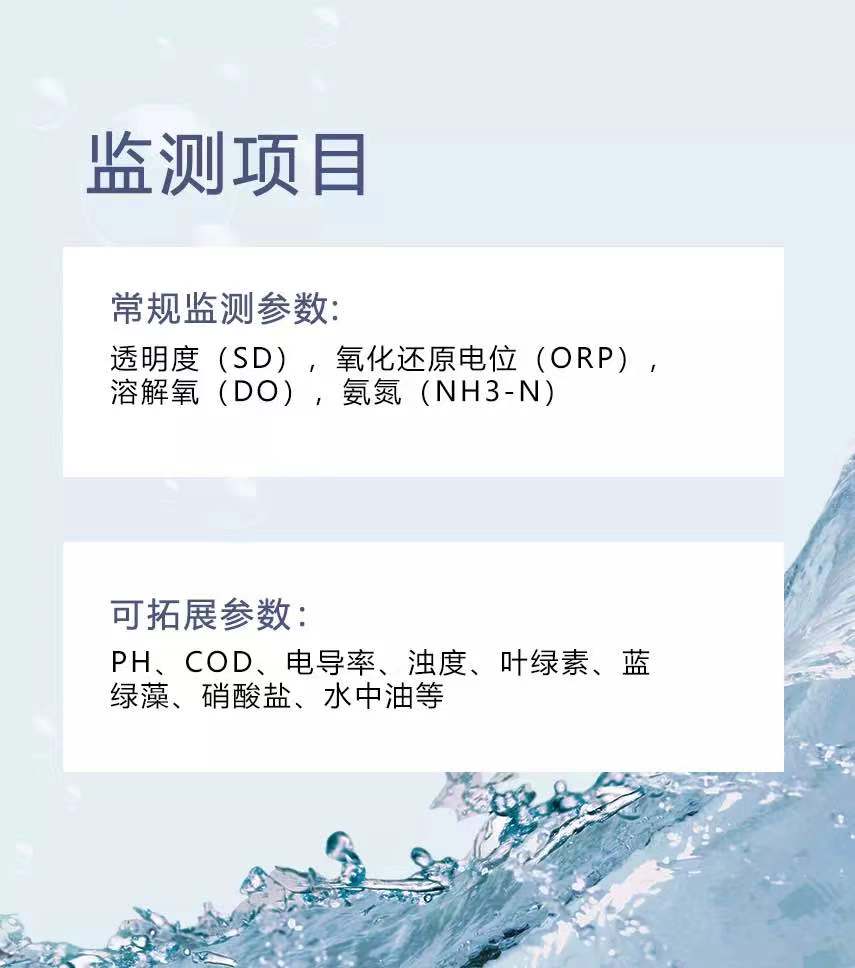前端設備主要用于監測黑臭水體四項參數,監測參數為透明度(SD)、溶解氧(DO)、氧化還原電位(ORP)、氨氮(NH3-N)、可根據現場監測參數需求擴展監測電極,所有電極均采用耐腐蝕殼體自動清潔光學部件,維護量低,穩定性高適用于各種復雜工況環境。