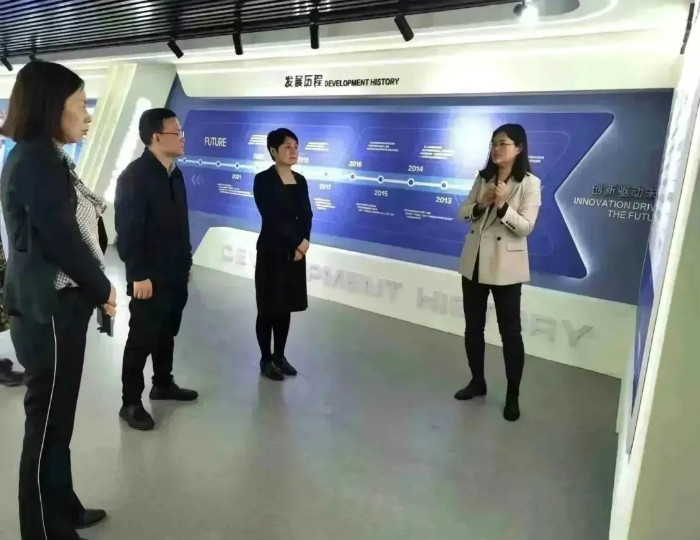 在同陽科技總經理陳文亮陪同下,王鳳主任一行參觀了同陽科技展廳,詳細聽取了同陽科技的發展歷程、主要經營項目和科技研發成果,了解企業經營現狀,傾聽發展需求。